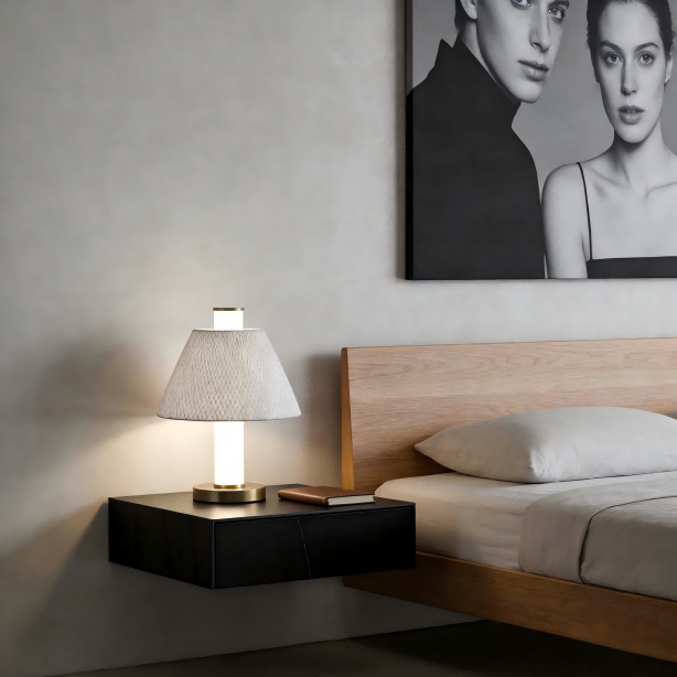 O corpo da lâmpada é confeccionado em ferro resistente e tratado com processo de galvanoplastia na cor cobre escovado, apresentando uma textura metálica delicada e de alta qualidade. O abajur de tecido de seda branca é macio e difunde a luz uniformemente, criando uma atmosfera de iluminação quente e suave. A fonte de luz LED de 20W, combinada com um alto brilho de 2.000LM, atende às necessidades diárias de iluminação. A temperatura de cor neutra de 4000K (personalizável para 2700K, 3000K, 5000K, etc. conforme as necessidades do cliente) e um índice de reprodução de cores superior a Ra80 garantem a reprodução real das cores dos objetos, proporcionando uma experiência visual confortável seja para leitura, trabalho ou relaxamento.