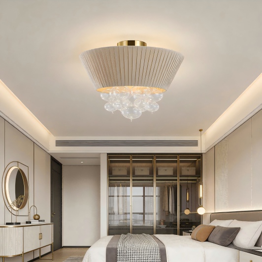 Como fabricante profissional especializado na exportação de luminárias há mais de uma década, a Strong Lighting tem o orgulho de apresentar sua mais recente criação, a luminária de teto bolha de tecido plissado. Este produto apresenta um abajur de tecido bege plissado combinado com decorações em bolhas de vidro transparentes, oferecendo um design que combina apelo artístico e praticidade. É adequado para iluminação de salas de estar, salas de jantar e lobbies de hotéis. A lâmpada está equipada com casquilho E14 e é compatível com lâmpadas LED. Foi aprovado nas certificações CE e UL, atendendo aos padrões internacionais de segurança. Oferecemos serviços de personalização OEM para compradores globais, clientes atacadistas e marcas de redes, e oferecemos suporte a soluções de otimização de embalagens para pedidos em grandes quantidades para reduzir efetivamente os custos logísticos e melhorar a eficiência das compras.